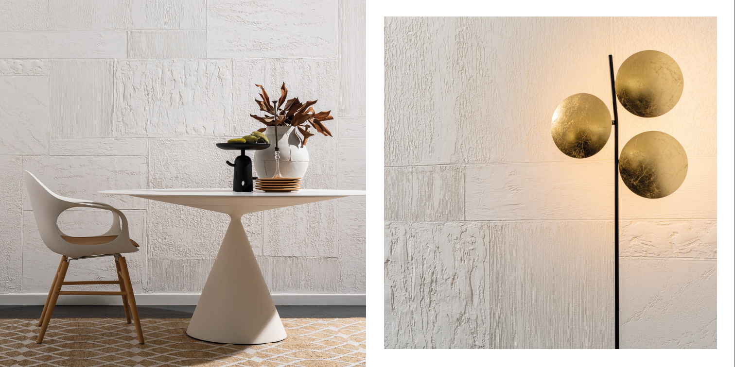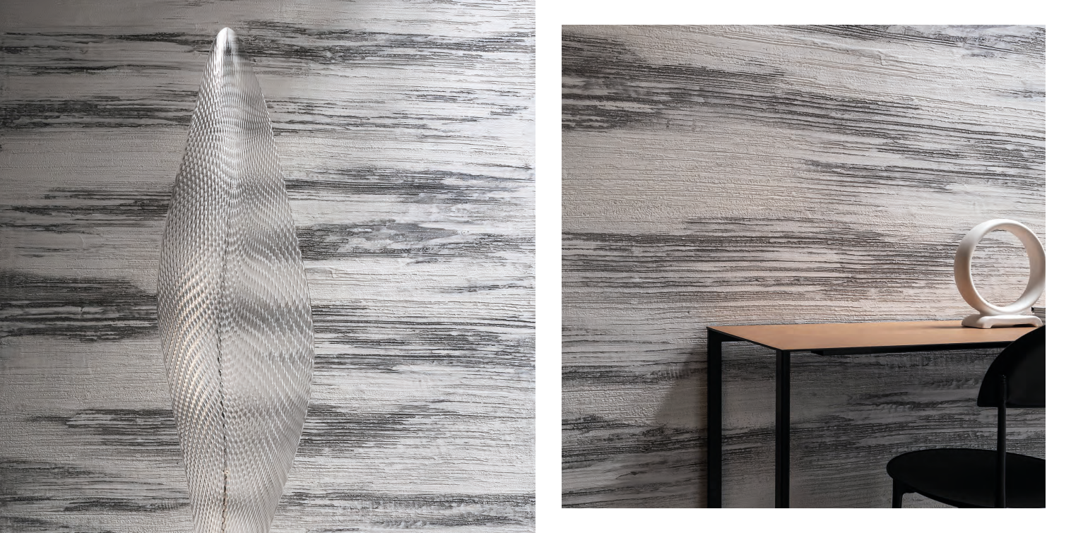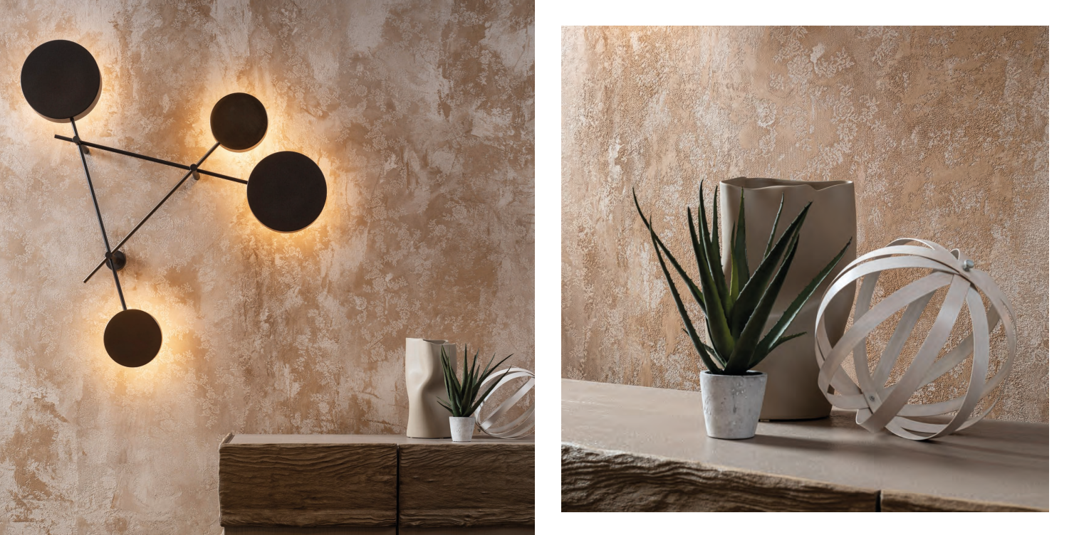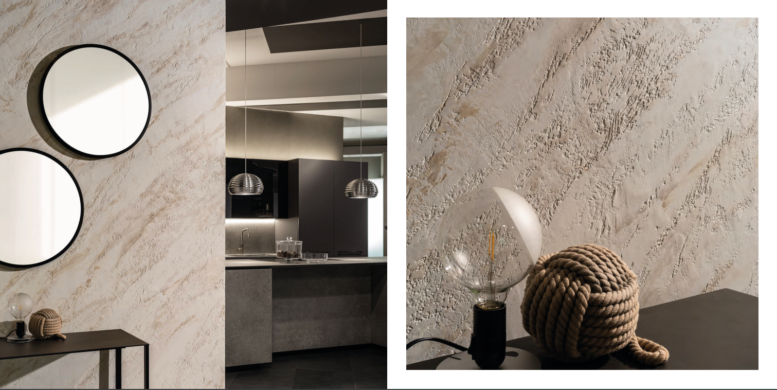 Effetto materico capace di conferire grande pregio agli ambienti, evocando
